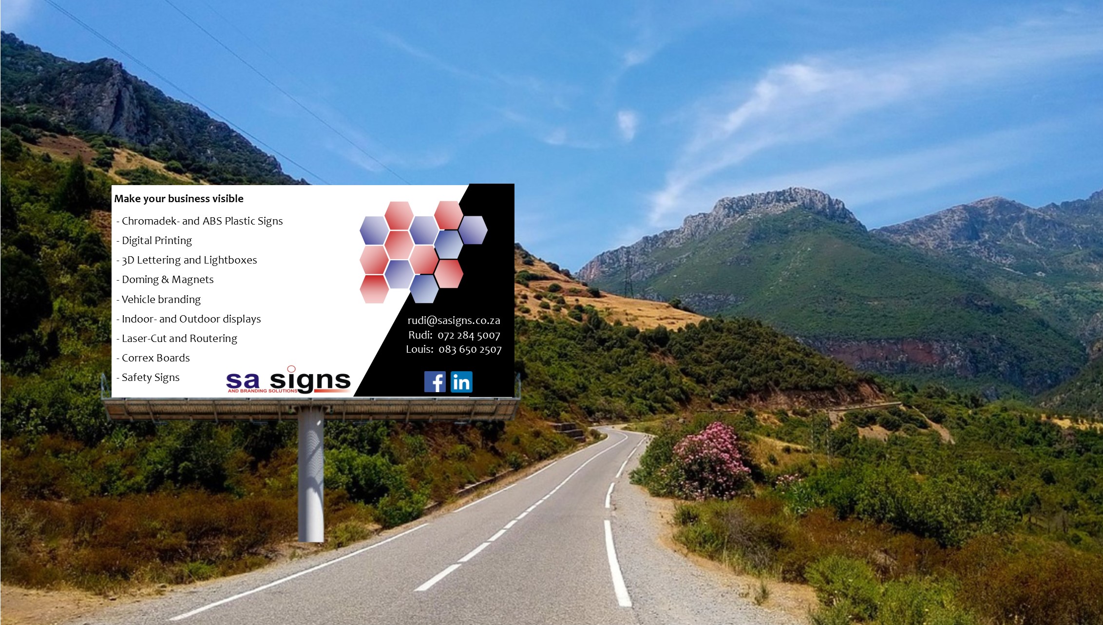 We are proud to introduce ourselves as a leading supplier of signage, printing and clothing products which ranges from sign boards, banners, flags, litho printing, corporate clothing, magazines and magazine layout, exhibitions and all kinds of advertising materials.